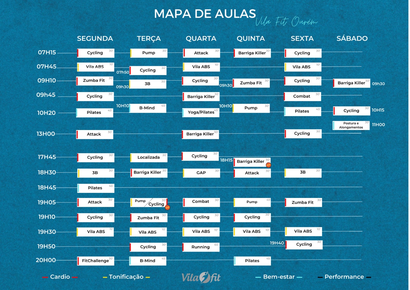 CONHECE O MAPA DE AULAS DO GINÁSIO VILA FIT OURÉM!