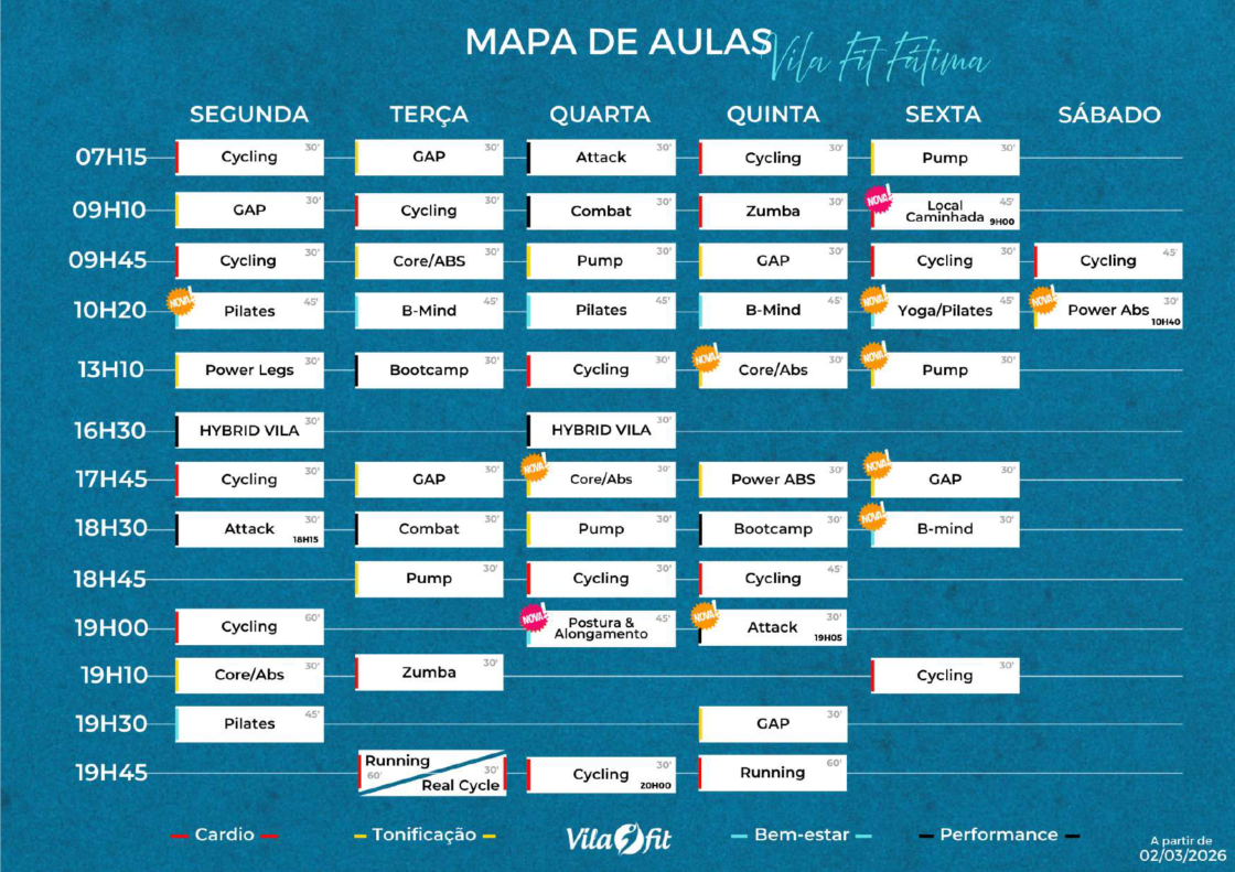 CONHECE O MAPA DE AULA DO GINÁSIO VILA FIT FÁTIMA!
